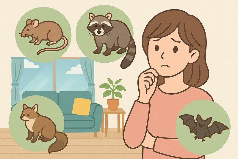 家の中で「カサカサ音」や「天井の異臭」、床に「黒い粒」を見つけたら、すでに害獣の侵入サインかもしれません。
