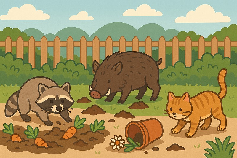そんな経験はありませんか?夜の間に何者かが訪れ、プランターをひっくり返したり、野菜をかじったり。ときにはフンや足跡まで残していくこともあります。